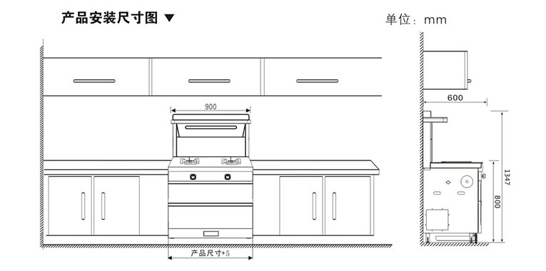 在安裝集成灶之前,需要在打造櫥柜的時候,預留好相應的尺寸大小,以保障集成灶能夠合理的安放。集成灶臺面的高度統一為810mm,深度統一為600mm,所以做櫥柜時高度和深度也要統一為810mm和600mm,預留的寬度要根據不同型號的集成灶而定,以管家先生集成灶的寬度為900mm,建議預留905mm的寬度,多出來的空隙方便產品安裝與維護,櫥柜與集成灶的間隙可以用壓邊條做到無縫安裝。
