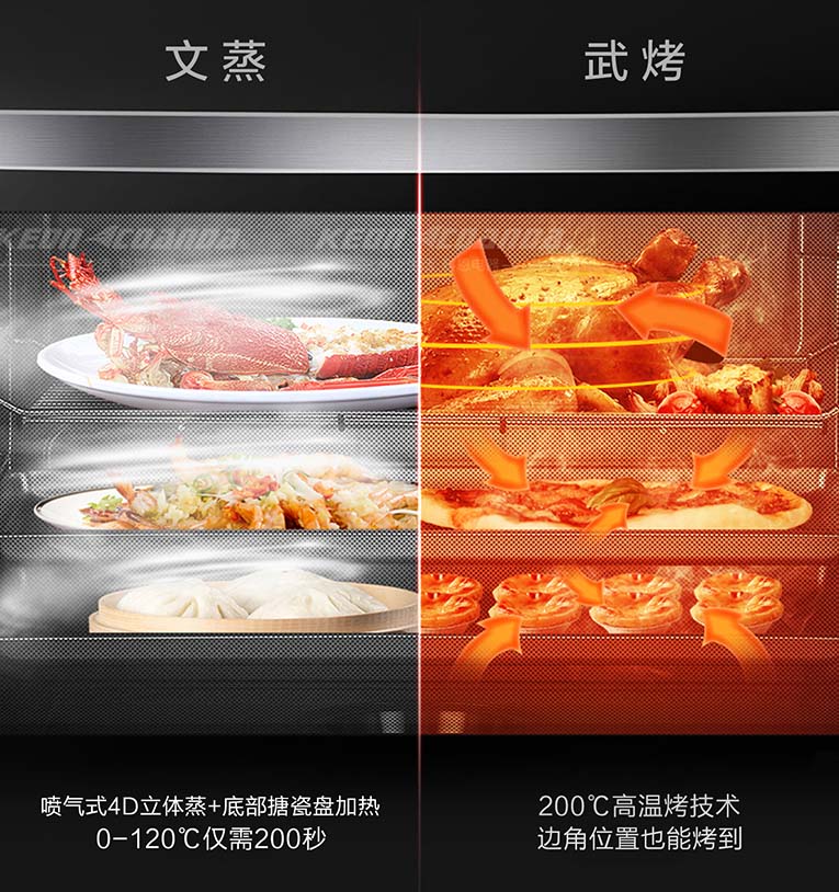 隨著蒸烤一體集成灶走進千家萬戶,消費者卻提出了更高的產(chǎn)品需求。為滿足更多消費者需求,科恩智能蒸烤消一體集成灶除了擁有蒸烤烹飪功能外,還具備了高溫消毒功能,完美突破了單一的烹飪需求。與此同時,科恩智能蒸烤消一體集成灶采用4D立體直噴蒸烤模式,四面受熱均勻,并有多重蒸烤模式選擇,廣域控溫設(shè)計,蒸箱加熱速度一提再提,熱風對流立體烘烤色香味俱全,即使多種美食同時烹飪也不串味!有了科恩智能蒸烤消一體集成灶就是有了廚房神器,讓生活更有品味!