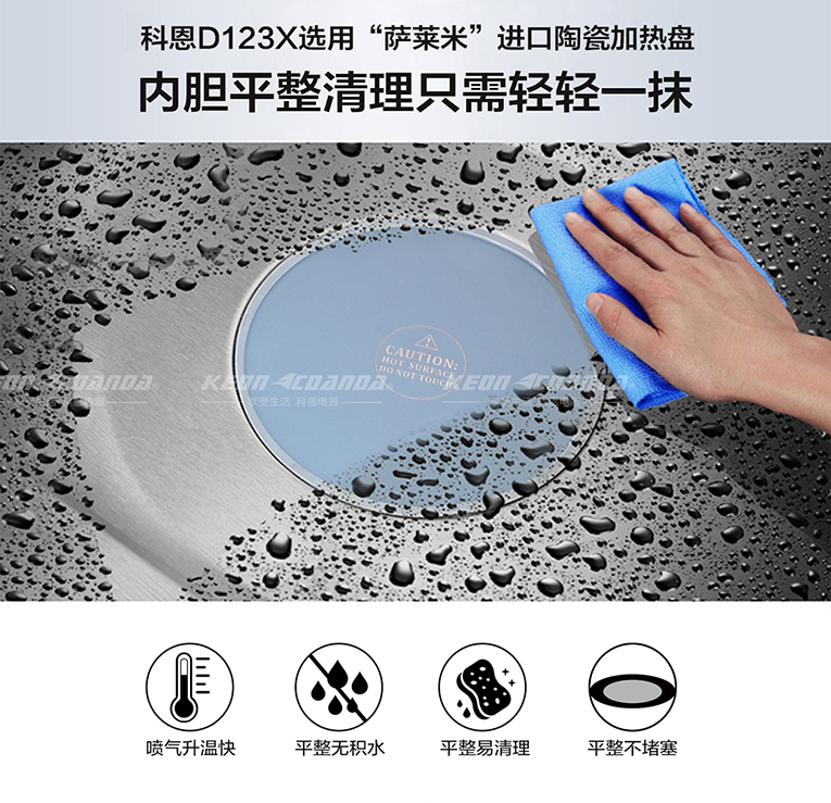 科恩智能蒸烤消一體集成灶的蒸烤箱通過“薩萊米”陶瓷加熱盤產(chǎn)生蒸汽,并滲入食物中來使食材熟透,蒸烤箱底部有一個光滑平整的加熱盤,隱形導流管將外置水箱中的水引流至加熱盤內(nèi),加熱盤不斷升溫,到一定溫度是,盤內(nèi)的水就會蒸發(fā)成水蒸汽,蒸汽在箱內(nèi)彌漫,滲入食物中。蒸箱、烤箱作為常用的家電,被嵌入集成灶箱體,不僅僅能夠節(jié)省空間,更能夠滿足不同用戶的不同烹飪需求!