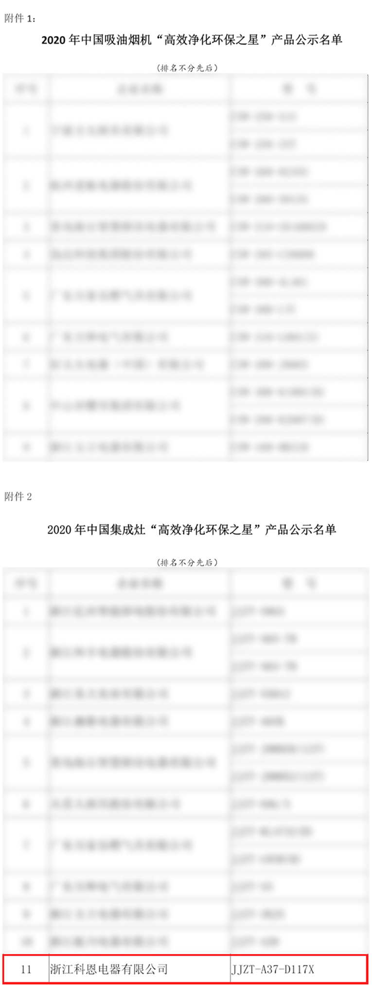 喜報|科恩智能變頻集成灶D117X榮獲“高效凈化環(huán)保之星”!!