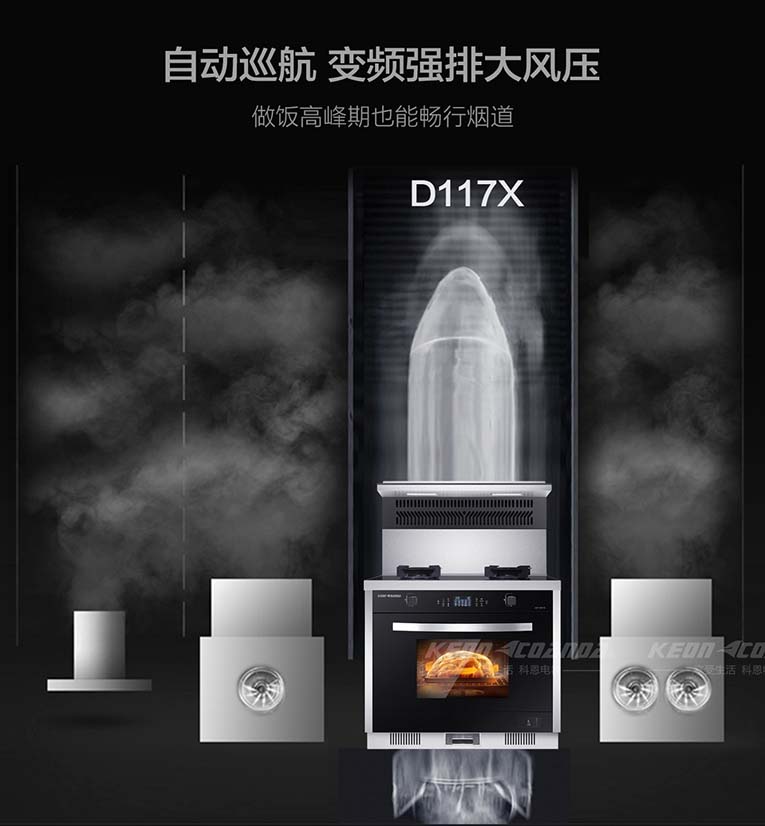 作為10余載高端廚電品牌,科恩電器一直引領(lǐng)著集成灶行業(yè)的發(fā)展,始終秉承著“為顧客提供更優(yōu)質(zhì)的廚電產(chǎn)品”。為時刻應對消費者需求,科恩電器不斷創(chuàng)新研發(fā)新品,積極布局集成灶產(chǎn)業(yè),以“蒸烤消一體、變頻大吸力、模塊化、冰箱門、大容量三抽”五大核心的產(chǎn)品矩陣優(yōu)勢引領(lǐng)廚電行業(yè)風潮!科恩智能變頻大吸力集成灶D117X作為新一代廚電產(chǎn)品,憑借擁有≥720Pa大風壓智能巡航系統(tǒng),高達21m3/min爆吸技術(shù),為用戶們有效解決了控煙、排煙問題,滿足不同的烹飪方式和開放式廚房的無煙生態(tài)環(huán)境而大受歡迎!