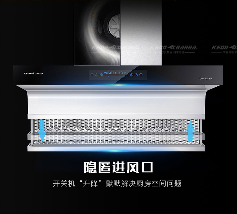 油煙機(jī)除了大吸力,從源頭把油煙控制住,不給任何逃逸的機(jī)會(huì)才是關(guān)鍵!想要實(shí)現(xiàn)無煙廚房,煙機(jī)的吸排是關(guān)鍵,集成灶十大品牌、廚電行業(yè)十大品牌科恩變頻大吸力智能體感操控?zé)煓C(jī)從吸排進(jìn)行突破,低位凈細(xì)直排系統(tǒng),速吸速排,強(qiáng)勁吸力帶來高效吸凈效果!為了達(dá)到精準(zhǔn)的控?zé)熜Ч贫髯冾l大吸力智能體感操控?zé)煓C(jī)采用立體風(fēng)場(chǎng)18.5m3/min大吸力,有效聚攏凈吸,打造油煙防護(hù)墻!另外7510擁有現(xiàn)代化自動(dòng)升降科技感,開關(guān)機(jī)“升降”默默解決老廚房空間問題!