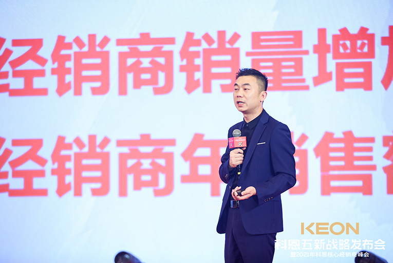 一場震撼全場的沙畫表演后正式會議正式開始,科恩電器董事長俞鋒率先上臺致辭,首先對現場所有人表達了誠摯的感謝。2021年科恩電器將乘風破浪拉開新帷幕,開啟全新篇章。隨后,科恩電器營銷總經理趙漢斌發布“五新戰略”:新門店、新團隊、新模式、新目標、新未來!不忘初心,方得始終,一起開創新時代、新征程!
