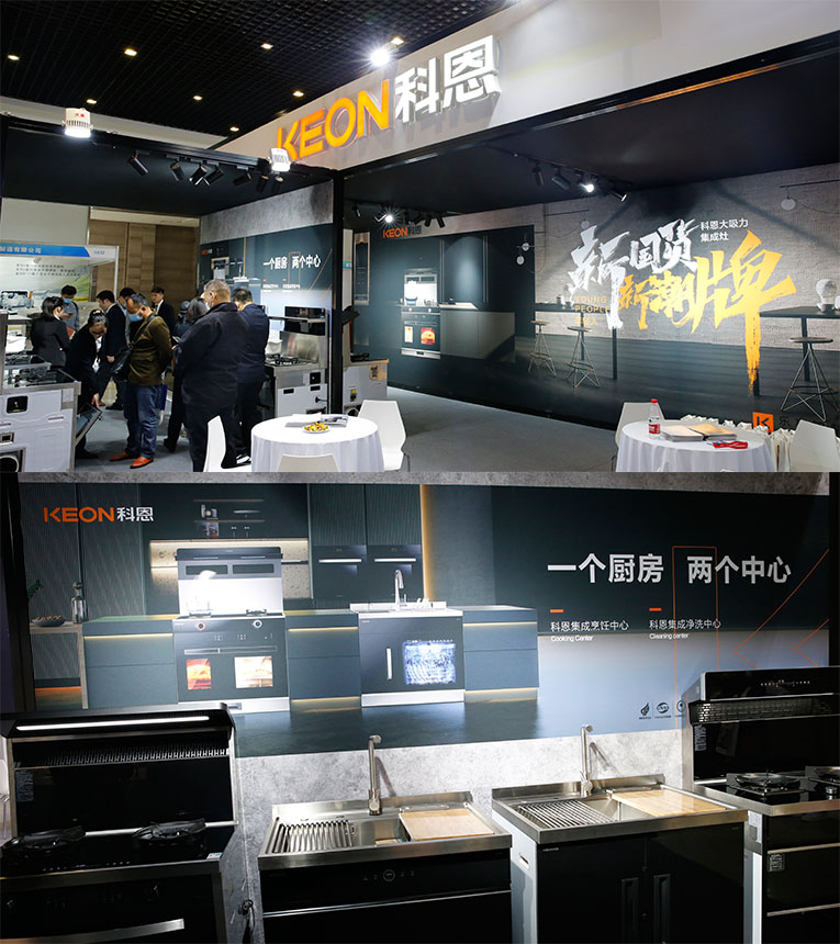 集成灶十大品牌、廚電行業(yè)十大品牌科恩集成灶半敞開式展位更顯非凡氣度,“新國貨、新潮牌”時尚氛圍更是吸睛無數(shù),通過零距離體驗產(chǎn)品,感受科恩產(chǎn)品帶來的樂享智慧廚房體驗。作為嵊州集成灶軍團(tuán)主力軍,攜“一個廚房,兩個中心”集成烹飪中心S系列集成灶與集成凈洗中心X系列集成水槽等多款凝聚匠心與智能之作重磅亮相。