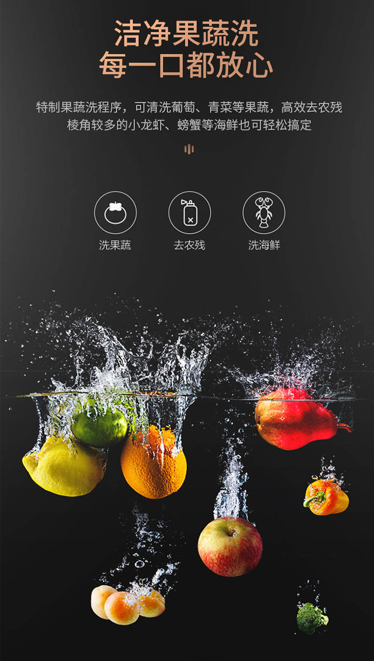 洗消烘存五合一,5大清洗模式、軟水除水垢、PTC加熱技術(shù)、高溫+UV消毒、72小時(shí)新風(fēng)系統(tǒng),雙層靈活碗籃設(shè)計(jì),湯鍋、炒鍋、大件廚具也能輕松洗。另外還搭載特質(zhì)果蔬洗程序,可清洗葡萄、青菜等果蔬,高效去農(nóng)殘,螃蟹等海鮮也可輕松搞定。