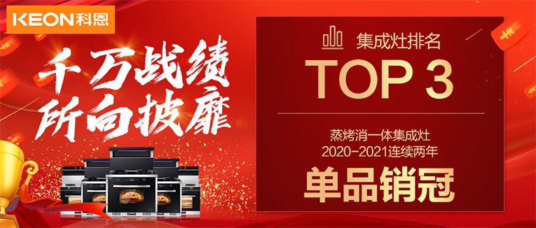 單品銷量第一!十大品牌科恩連續(xù)2年蒸烤消一體集成灶榮獲銷冠!