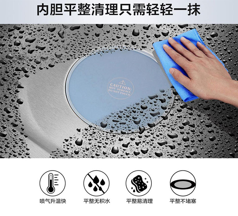 科恩蒸烤消一體集成灶能蒸善烤,值得一體的是該系列產(chǎn)品采用“薩萊米”進(jìn)口陶瓷加熱,跟普通集成灶不同的是,傳統(tǒng)蒸盤不易清潔、易堵塞,在蒸制過(guò)程中排水孔容易堵塞導(dǎo)致故障,而陶瓷加熱盤噴氣升溫快、平整無(wú)積水、易清理、不堵塞,內(nèi)膽只需輕輕一抹就能潔凈。