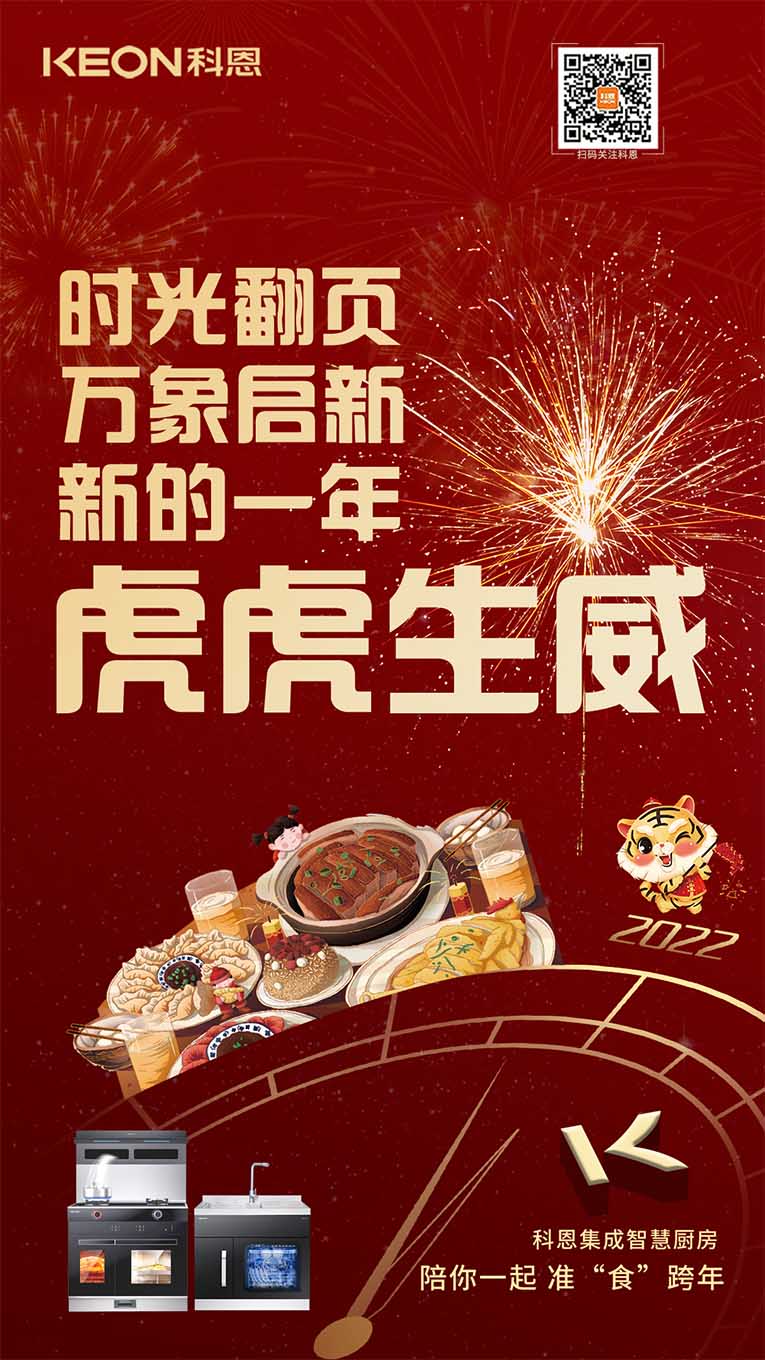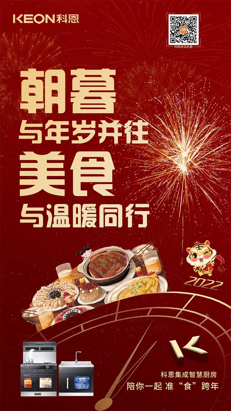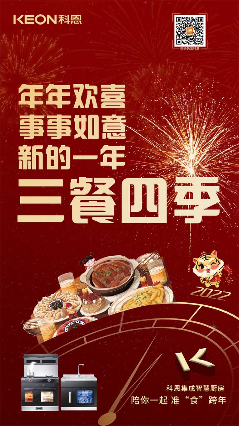 一臺集成灶十大品牌、廚電行業十大品牌科恩集成灶,輕松搞定您家的跨年大餐,吃好喝足迎接新年,科恩也在此祝賀大家新年新氣象~
