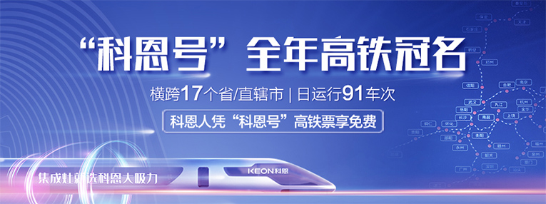 作為集成灶十大品牌、廚電行業(yè)十大品牌的科恩集成灶,杭紹臺(tái)高鐵的建成開通,開啟了科恩集成灶發(fā)展新篇章。2021年,斥資800萬(wàn),“科恩號(hào)”高鐵品牌專列馳騁大江南北,橫跨17個(gè)省/直轄市,日運(yùn)行91車次。