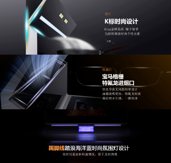 科恩C系列兩款王炸產(chǎn)品:C200消毒柜款集成灶、C260蒸烤消炸一體集成灶,在預(yù)熱期間就極具熱度,如今終于華麗登場(chǎng),從外觀來(lái)看,此次的C系列完全顛覆了以往集成灶笨重且不夠美觀的形象,創(chuàng)造性的采用了企業(yè)標(biāo)識(shí)“K”字型時(shí)尚機(jī)頭,寶馬經(jīng)典格柵設(shè)計(jì)進(jìn)煙口,以及踏浪海洋藍(lán)時(shí)尚氛圍燈底座設(shè)計(jì),盡覽奢美,構(gòu)筑視覺(jué)與觸覺(jué)的全新想象,一眼,鮮明,再睹,目不轉(zhuǎn)睛!