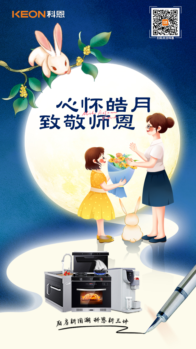 2022年9月10日,是闔家團圓的季節,也是致敬師恩的季節,中秋節與教師節不期而遇,讓中秋節更加高雅知性,讓教師節富有儀式感,明月如燈,師恩似海,豈止感恩,共祝團圓,雙節將至,科恩集成灶,祝愿大家花常好,月常圓,人常在!