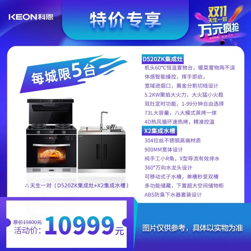 科恩集成灶,天生一對·萬元瘋搶,雙十一狂歡鉅惠購來啦