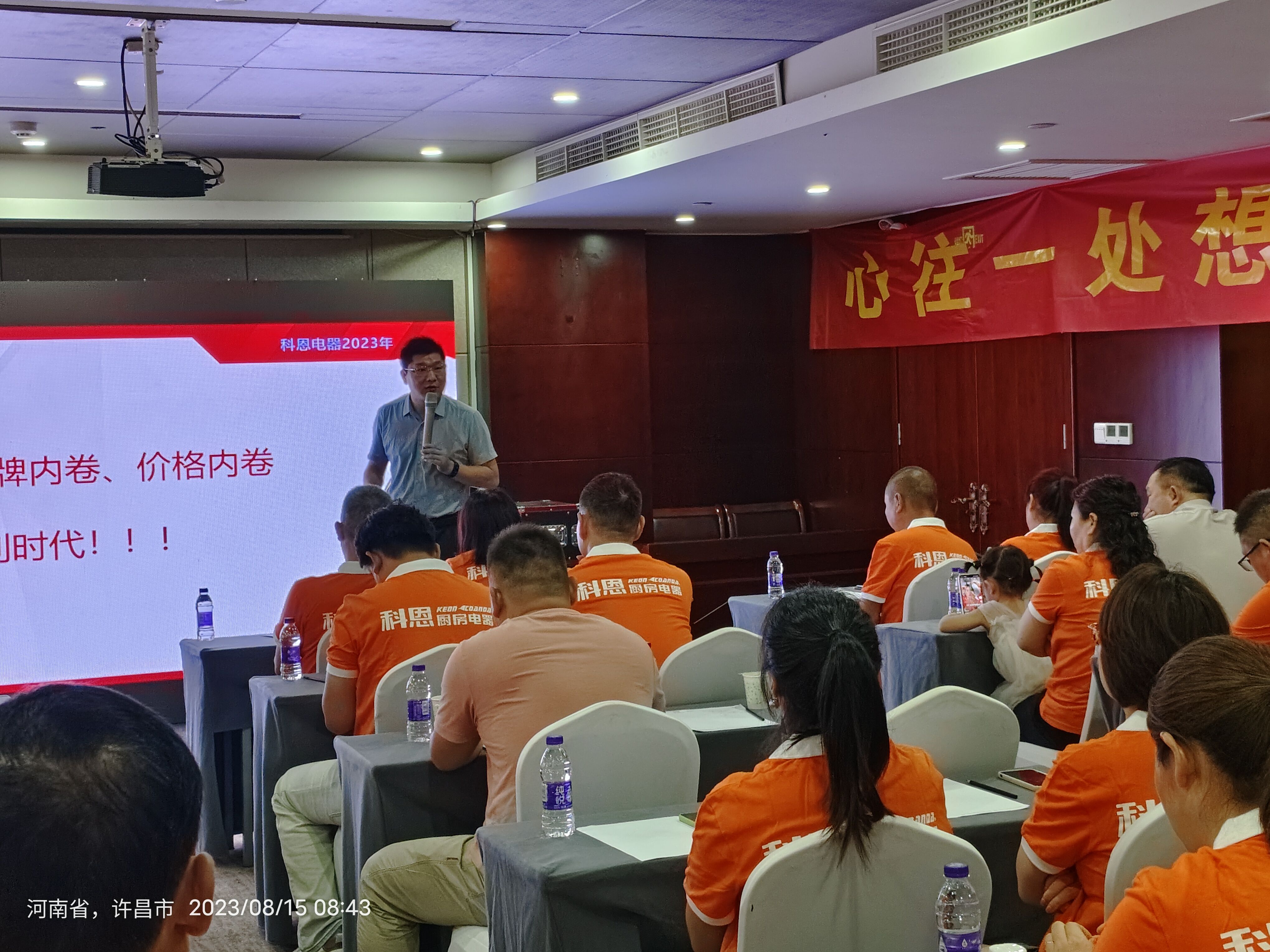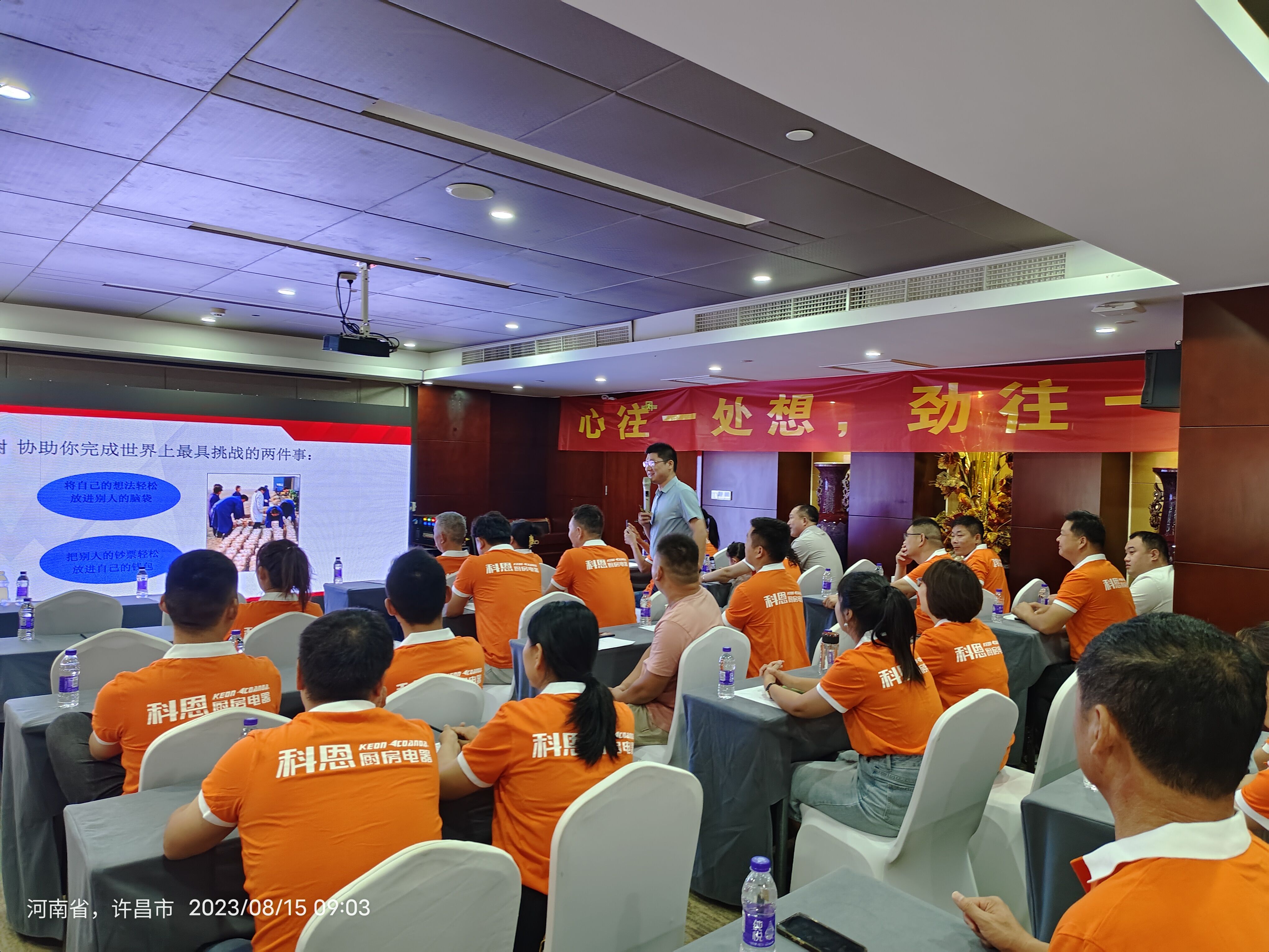 以客戶為中心,以幫扶客戶發展為己任,為了讓科恩客戶更了解廚電行業發展趨勢,幫助經銷商轉型升級。2023年8月14日,科恩河南區域在許昌召開了經銷商培訓會。本次培訓為期兩天,旨在為經銷商樹立明確運營方向,為金九銀十打下扎實基礎!