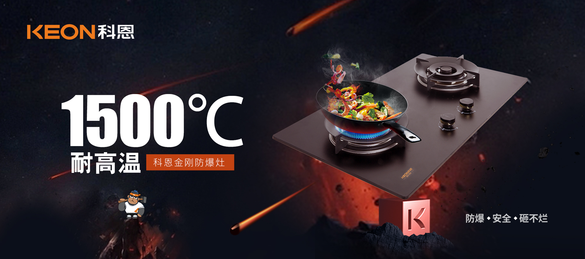 符合國家標準的玻璃鋼化一般標準在700度(鋼化溫度)以上,而由科恩自主研發的金剛防爆灶,可耐高溫1500℃,遠高于國家標準。同時,也意味著更安全。