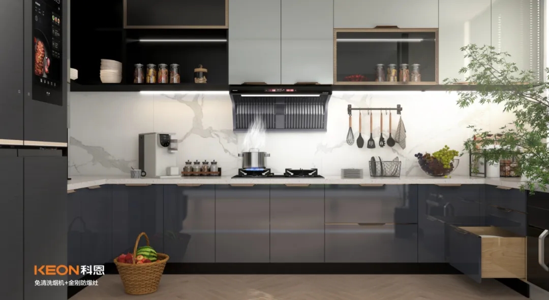 這個時候又有很多人說,開放式廚房會不會造成油煙亂跑,整個房子都油膩膩的?選對廚電產(chǎn)品能徹底幫你解決這個難題!