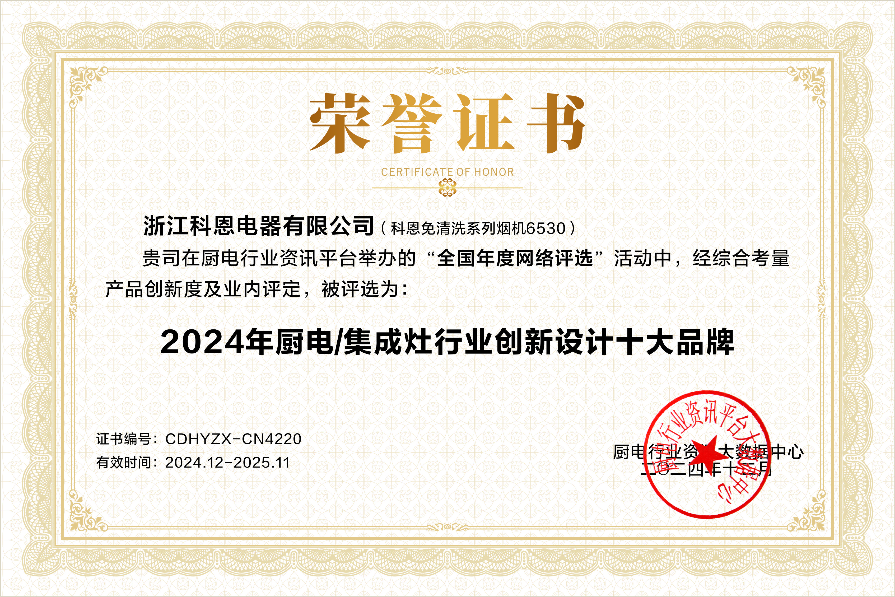 在眾多創(chuàng)新產(chǎn)品中,科恩6530免清洗煙機尤為引人注目。這款煙機憑借獨特的免清洗特質(zhì),有效解決了傳統(tǒng)煙機清洗困難的痛點,為消費者帶來了極大的便利。其創(chuàng)新性的設(shè)計不僅提升了產(chǎn)品的實用性,還在美學(xué)與功能的融合上達到了新的高度,榮獲“2024年廚電/集成灶創(chuàng)新設(shè)計十大品牌”獎實至名歸。這一獎項的獲得,也充分彰顯了科恩電器在產(chǎn)品設(shè)計創(chuàng)新方面的領(lǐng)先地位。