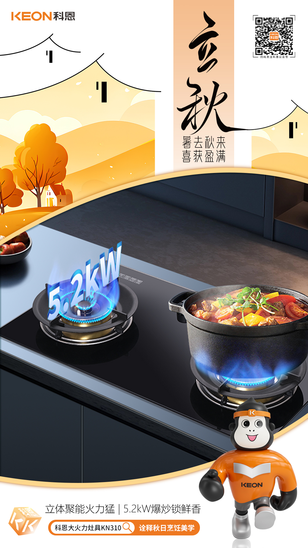 立秋煙火起,灶上煥新時(shí)。科恩匠心推出猛火灶具KN310,以“火候藝術(shù)”重塑廚房烹飪美學(xué),讓每一味秋鮮都恰到好處,鎖住時(shí)節(jié)的醇厚與溫情,立秋貼秋膘,灶具煥新正當(dāng)時(shí)!