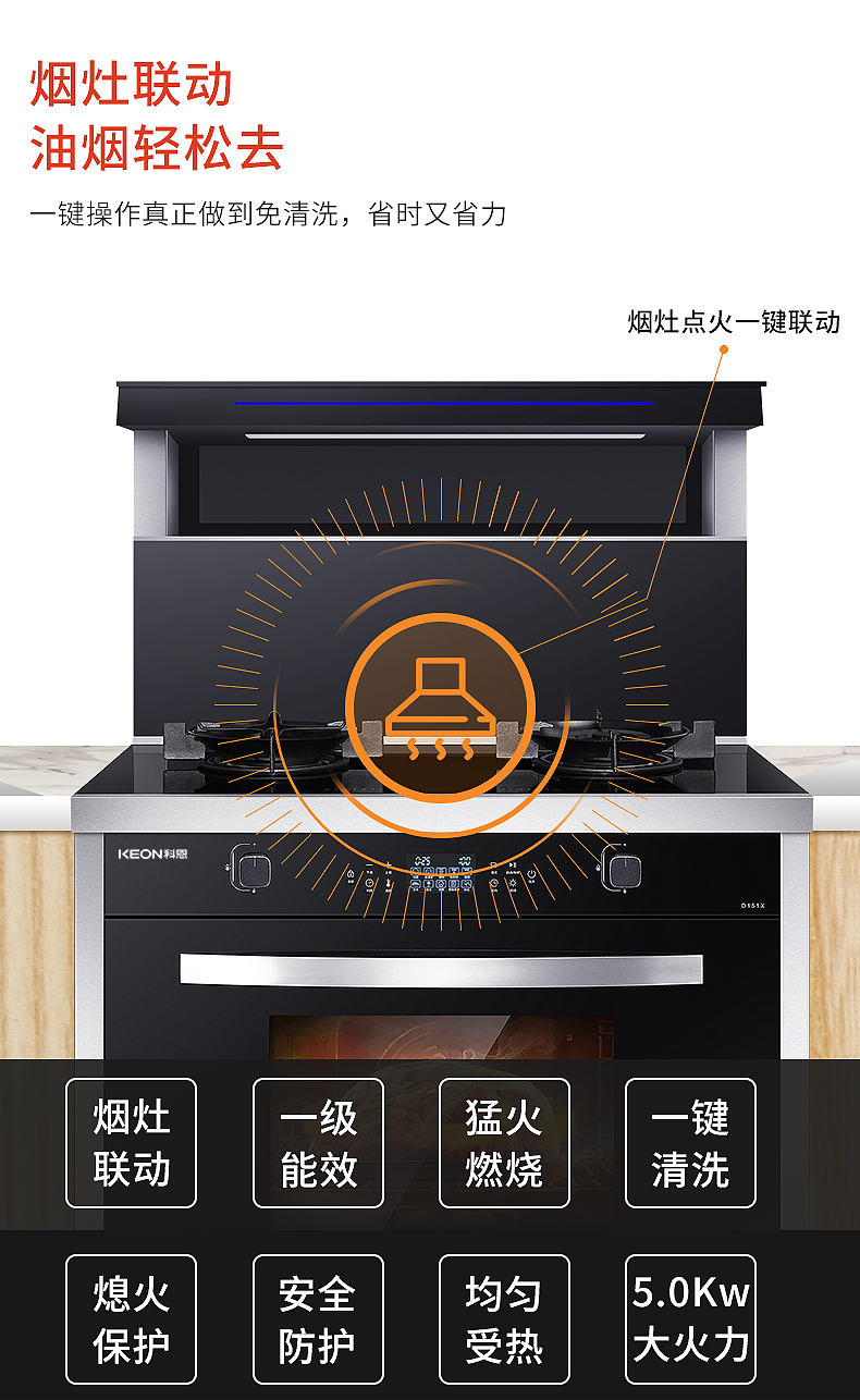 - 精控勁火,1級能效,5.0KW大火力肆意爆炒,美味快速出鍋。