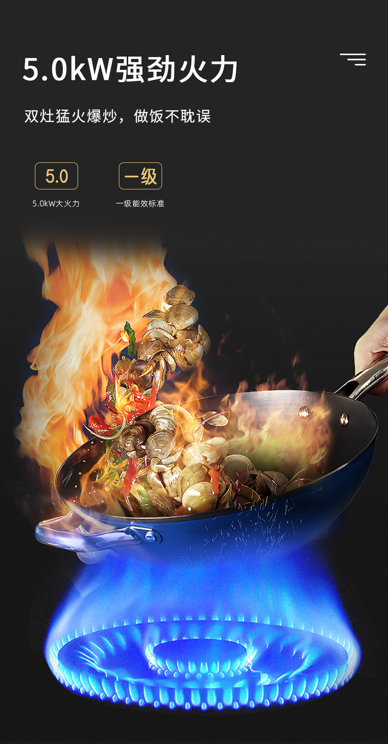 • 5.0kW強勁火力,雙灶猛火爆炒