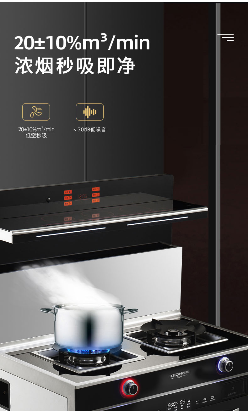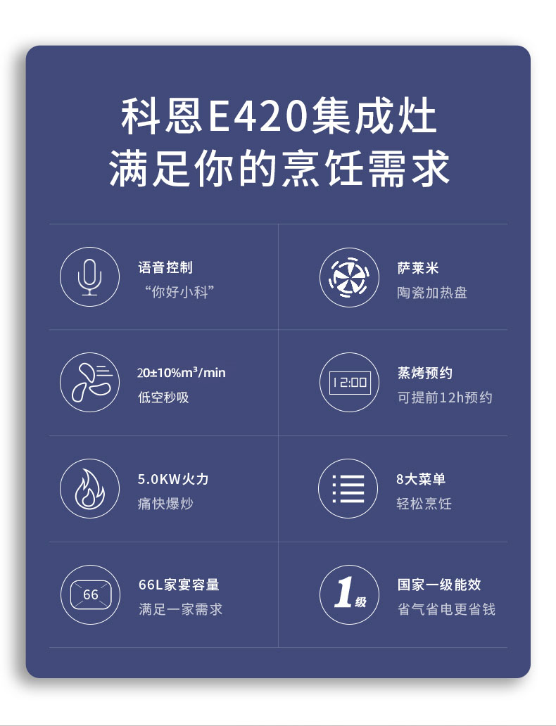 • 語音喚醒,智能鮮蒸,科恩E420智能語音集成灶