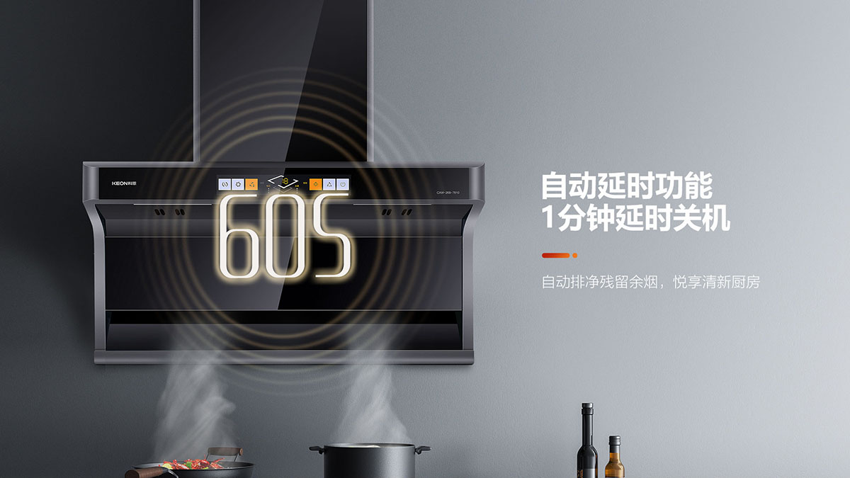 • 自動延時功能,1分鐘延時關機,自動排凈殘留余煙,悅享清新廚房