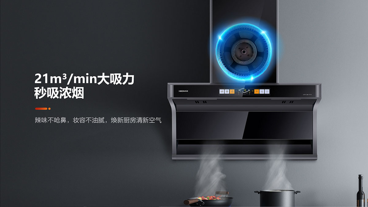 • 三檔吸力,輕松應對各類油煙,專為中國廚房習慣爆炒量身定制