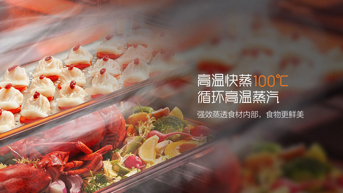 - 360°立體環(huán)噴技術(shù),加速動(dòng)態(tài)蒸汽內(nèi)循環(huán),食物鎖鮮更營(yíng)養(yǎng)