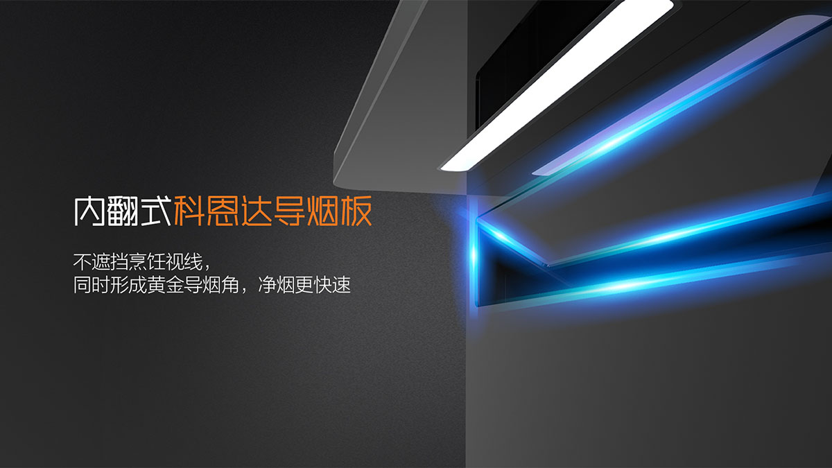 • 內(nèi)翻式科恩達(dá)網(wǎng)板智能開合,導(dǎo)煙更快速