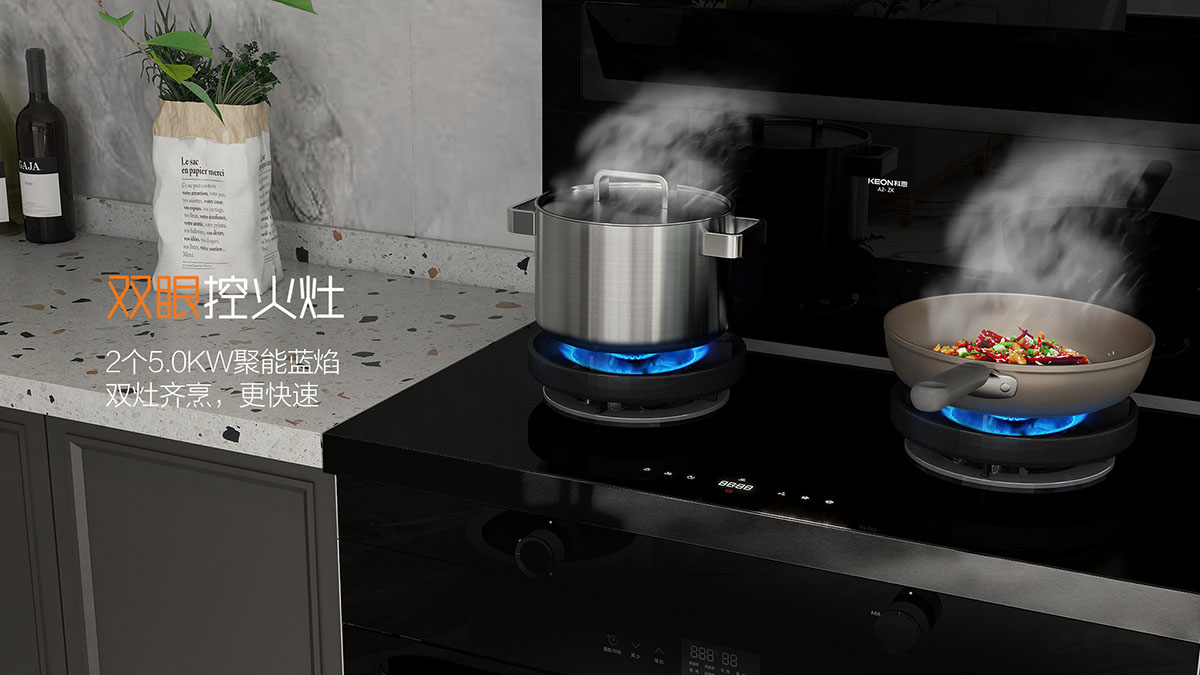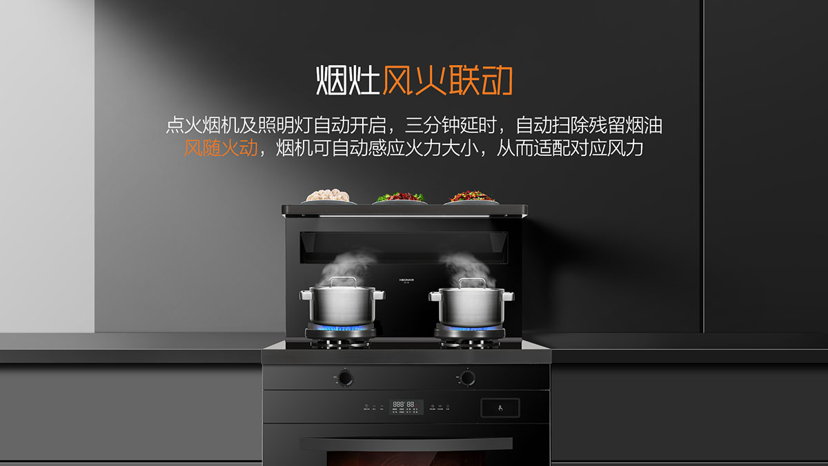 • 煙灶聯(lián)動,點火自動同步開啟油煙機(jī)