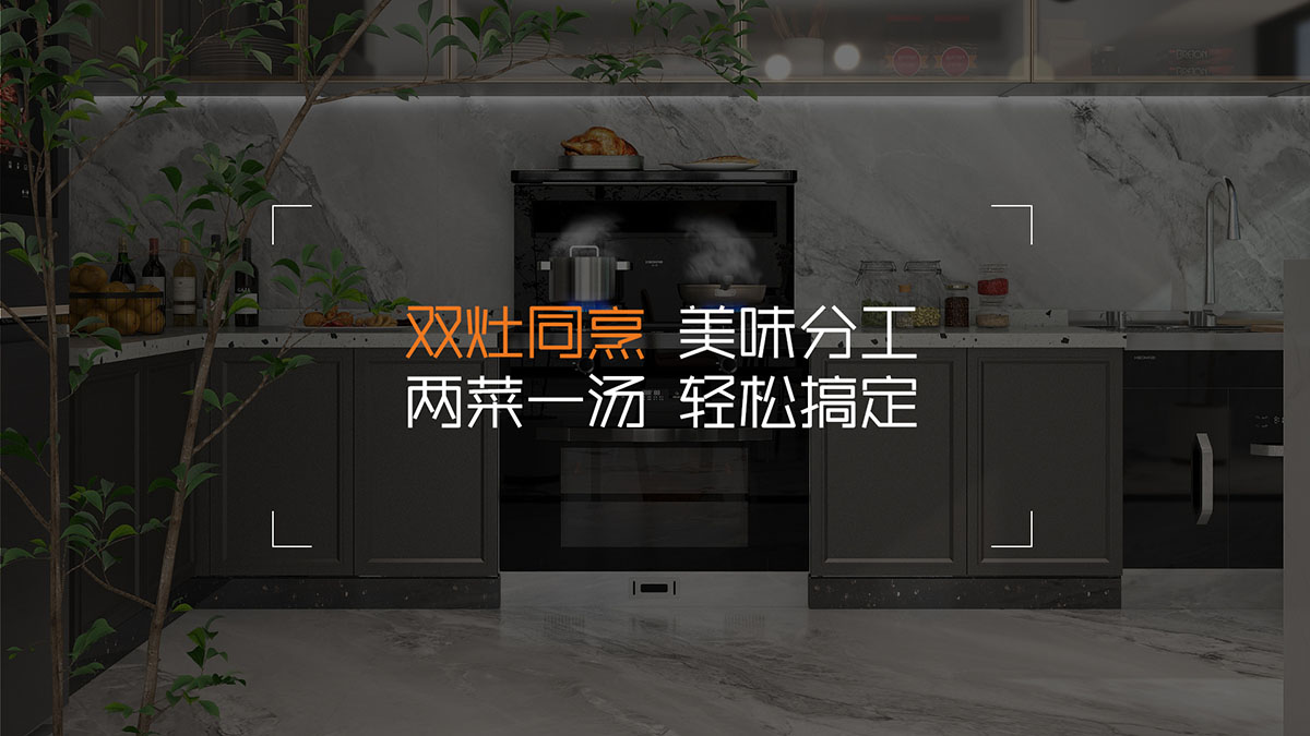 • 蒸烤一體款集成灶,八大功能智能集成,省錢省空間又實用