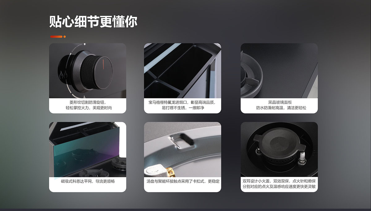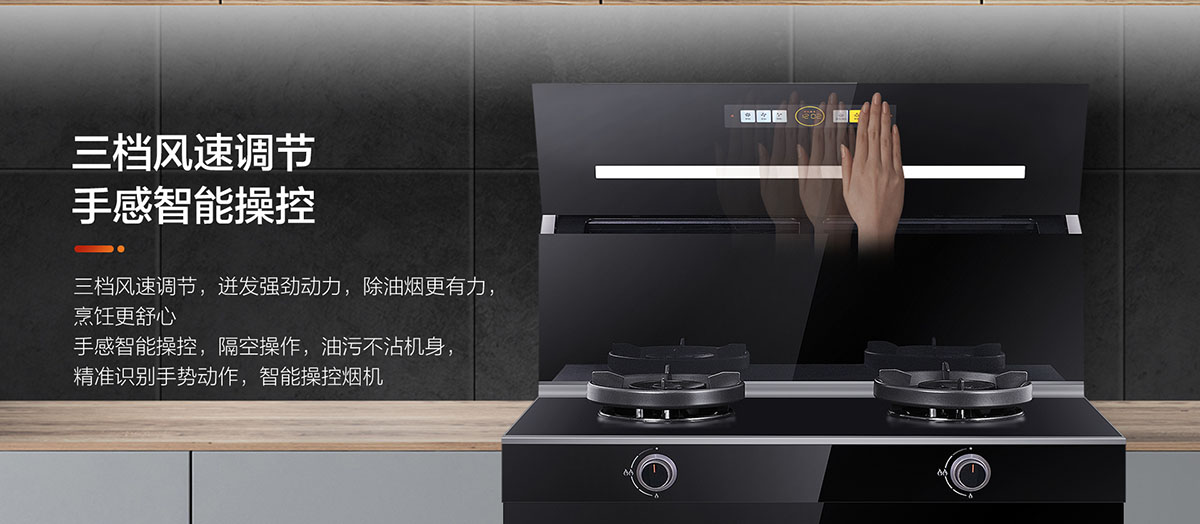 • 手感智能操控,0接觸更便捷,油污不沾機身