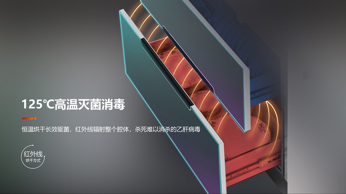 • 125℃雙管高溫消毒,360°循環發熱殺菌更徹底