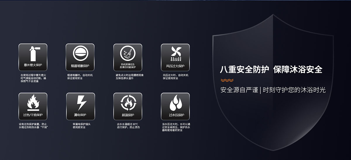 - 安全排氣裝置,當意外停電、煙道堵塞時自動關(guān)閉燃氣