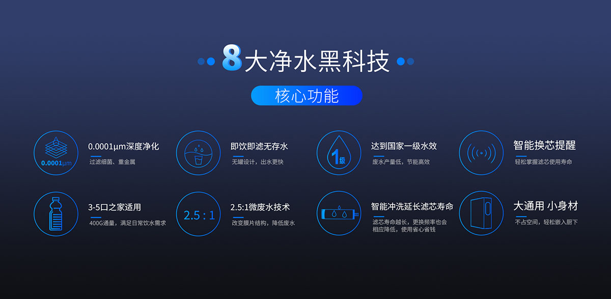 • RO膜長(zhǎng)效續(xù)航,高精度反滲透,強(qiáng)凈耐用