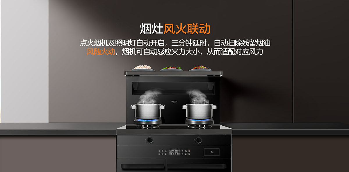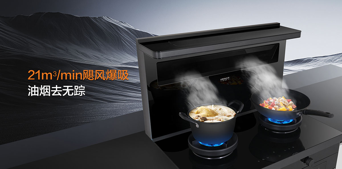 • 21.5m³/min寬域爆吸攏煙,油煙0逃逸