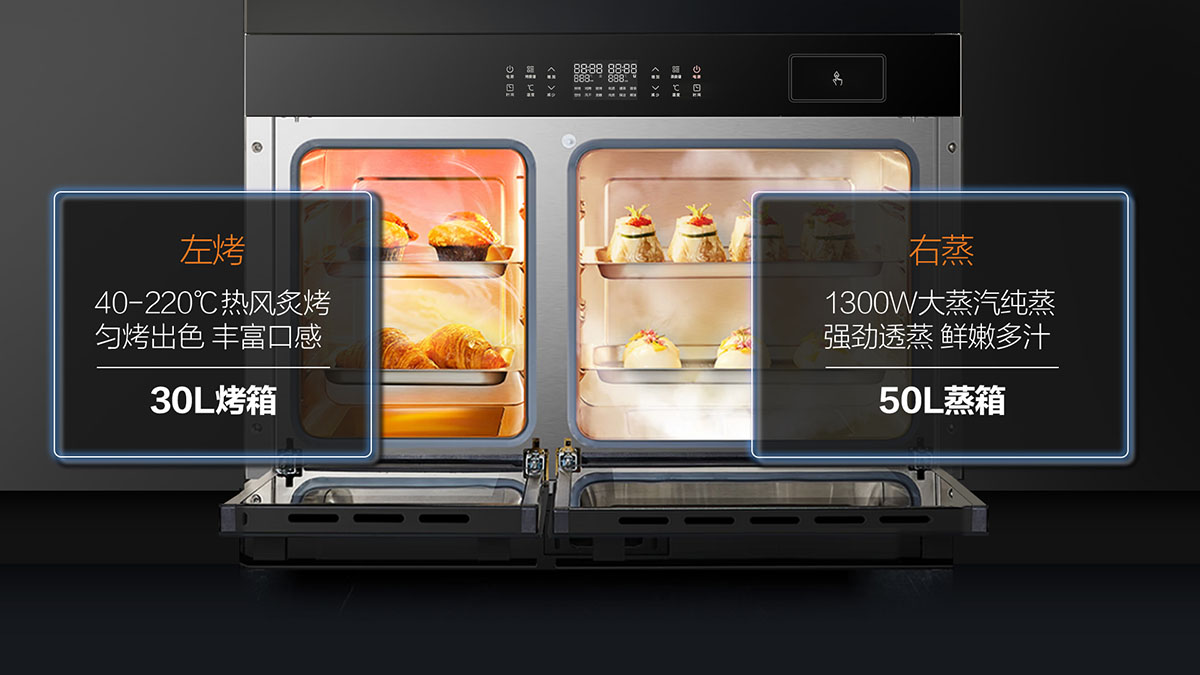 • 蒸烤獨立,雙管齊下,烹飪更高效