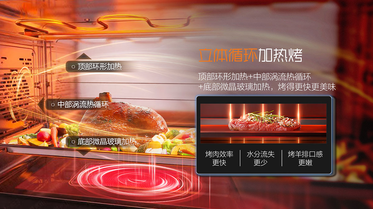 • 3D澎湃蒸,立體循環(huán)烤,無油空氣炸,食物更美味