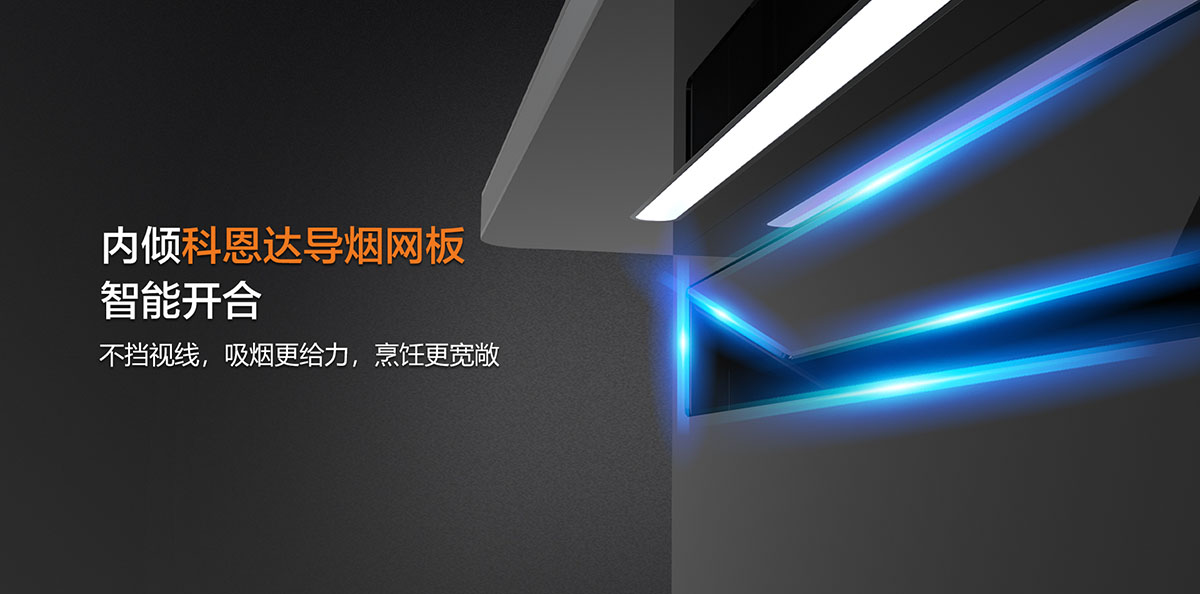 • 內(nèi)翻式科恩達(dá)網(wǎng)板智能開合,導(dǎo)煙更快速