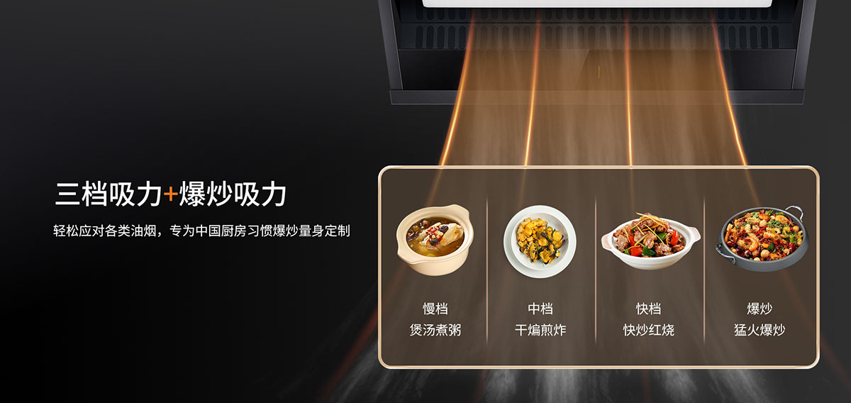 • 三檔吸力,輕松應(yīng)對各類油煙