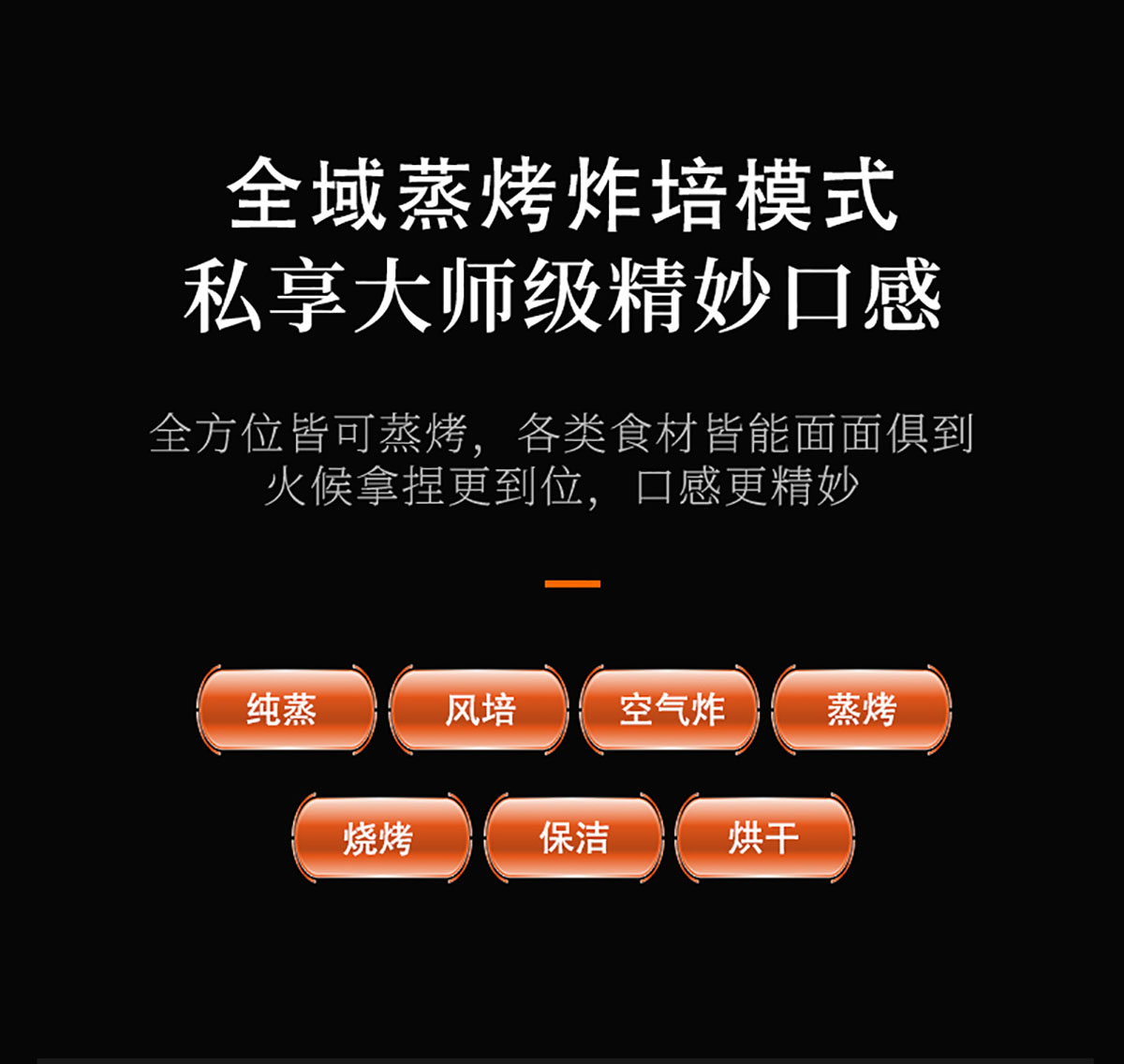 - 智能全域蒸烤炸培模式,全能烹飪一機搞定