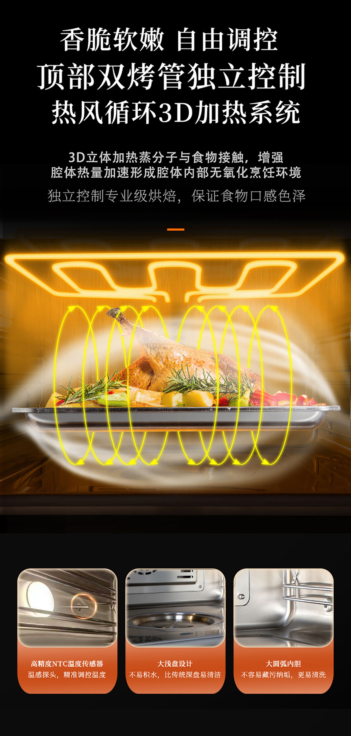 - 三層玻璃門板耐熱防爆,確保使用過程不燙手