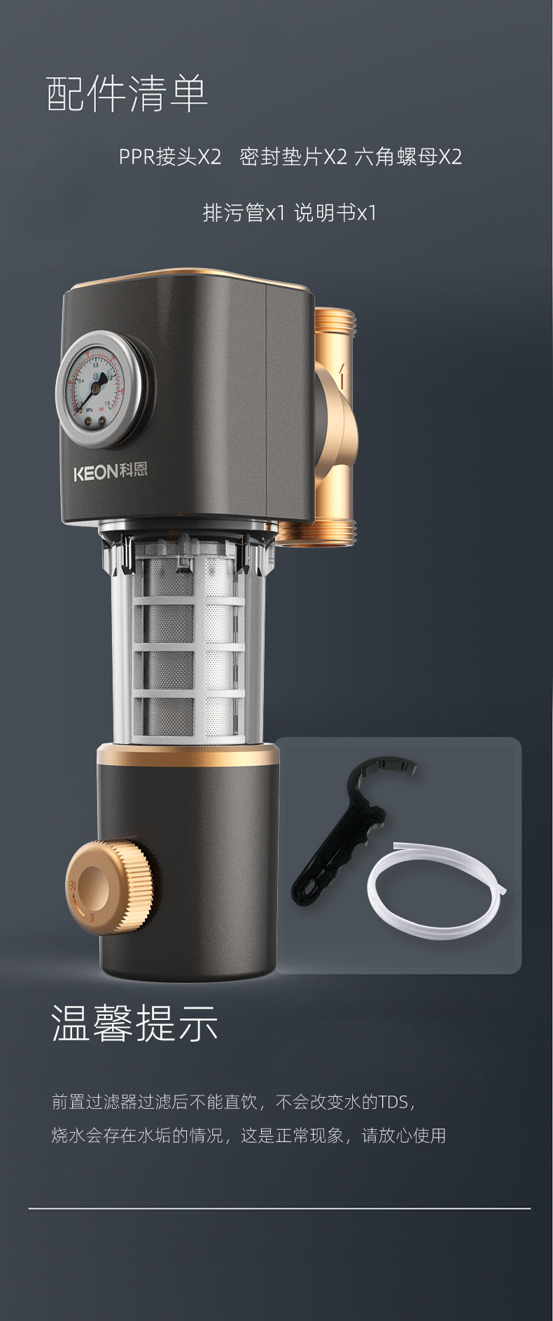 • 6噸/小時大流量,快速過濾,全屋用水無壓力