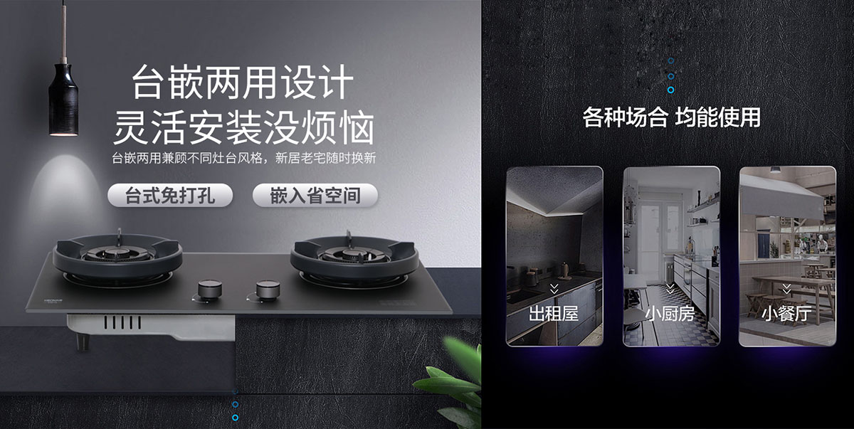 • 環抱式立體聚能環,防風聚熱,提升熱效
