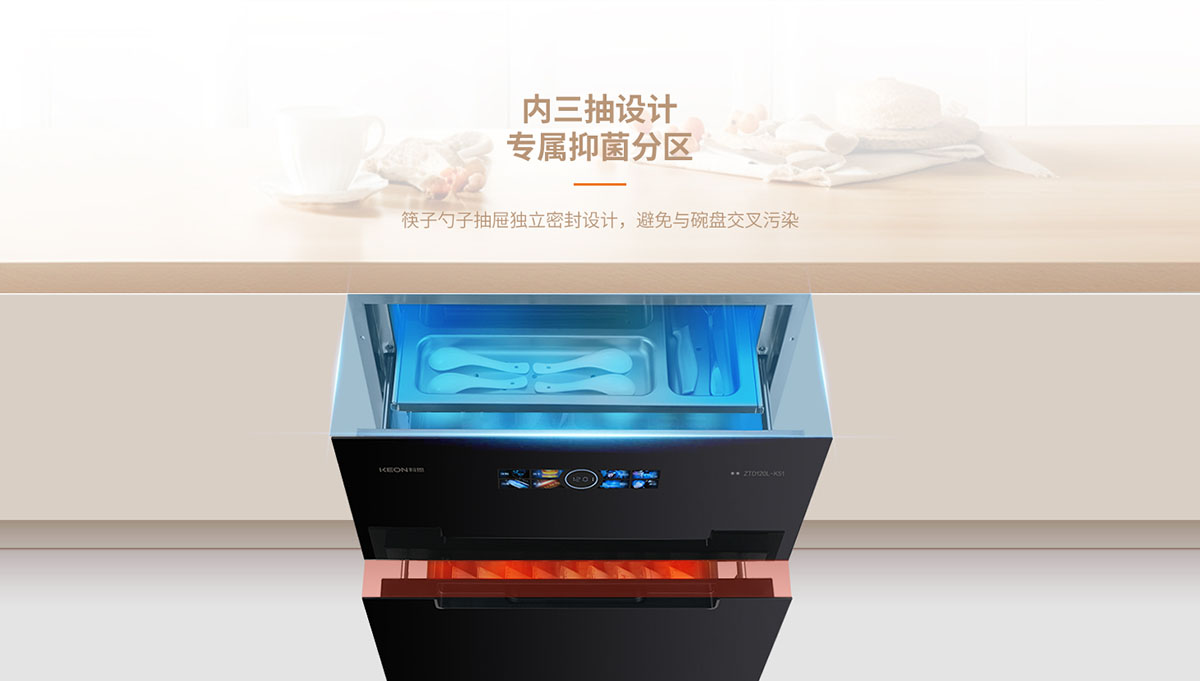 • 內三抽專屬抑菌隔層,避免餐具交叉污染