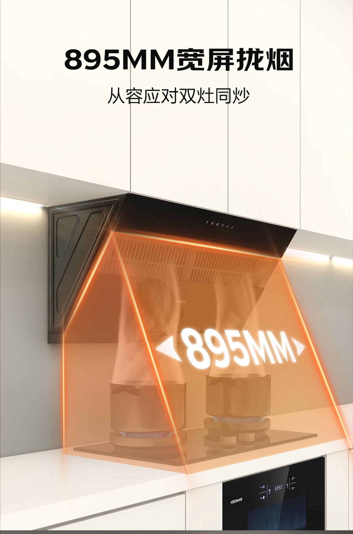 • 895MM寬屏攏煙,雙灶同烹,從容應對