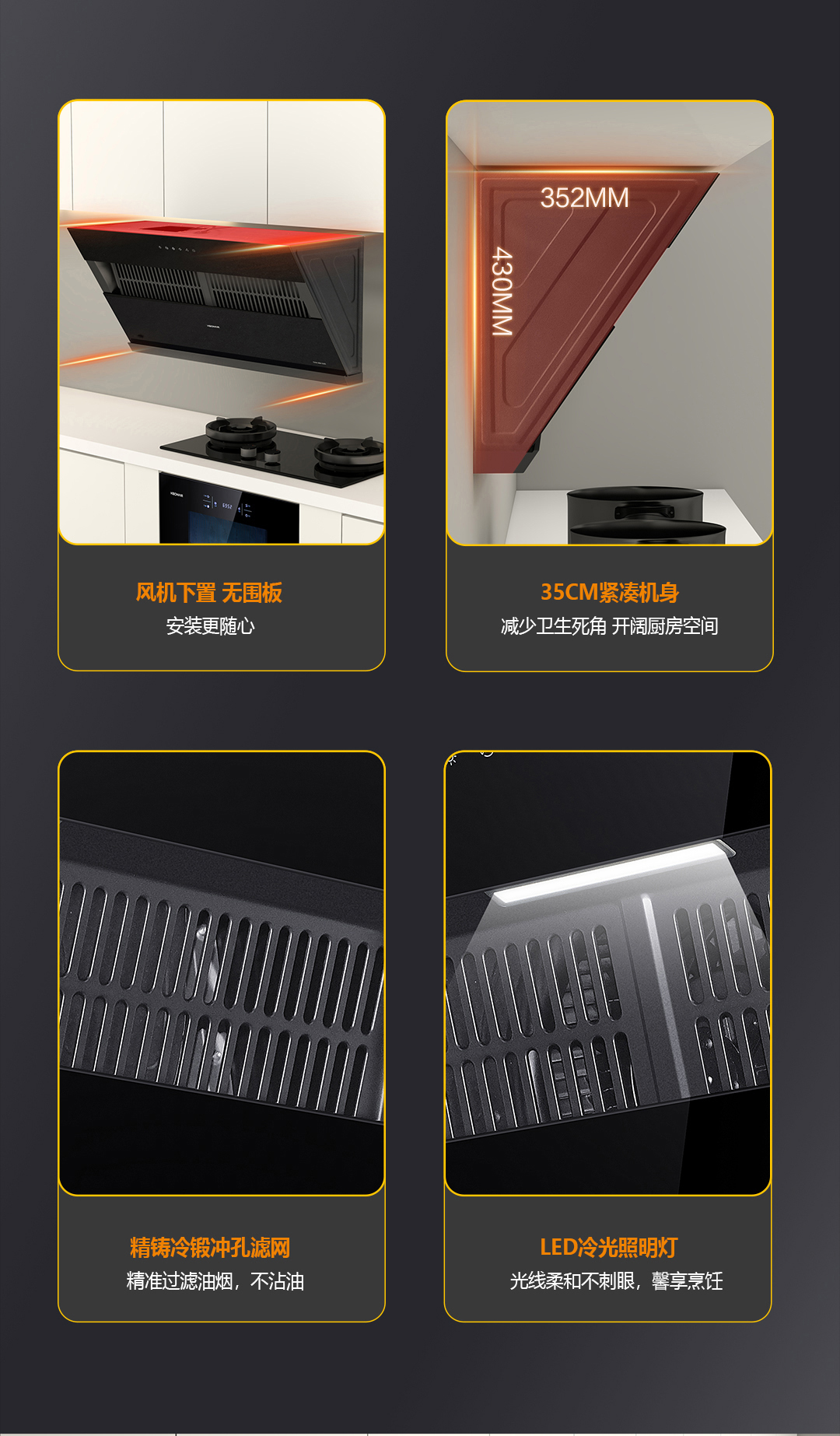 • 330MM低空勁吸,控煙于源頭