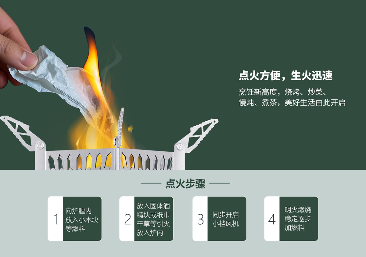 • 內置可收縮添柴口,下置補氣風門,支持雙模式燃燒