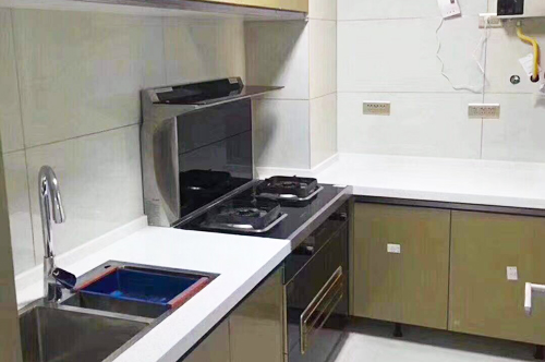 科恩湖南經銷商提供的T55煙機和不銹鋼水槽廚房實景